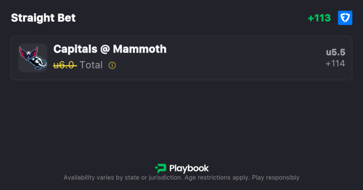 - Capitals vs. Mammoth Over/Under: 6.5 (-116o / -142u)