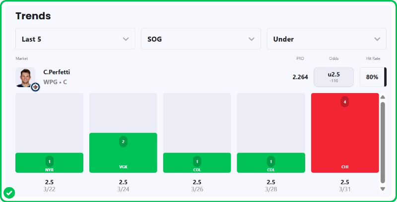 Cole Perfetti has averaged 2.07 shots per game this season for Winnipeg, and while he has 25 shots in his last 10 games, I don't really understand this line being this high.