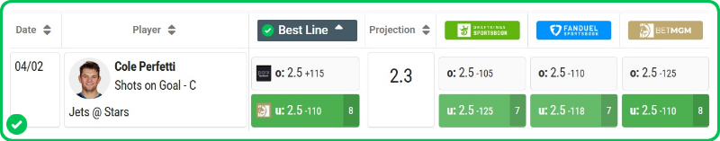 Best Bet: Cole Perfetti Under 2.5 Shots On Goal (-110, BetMGM)