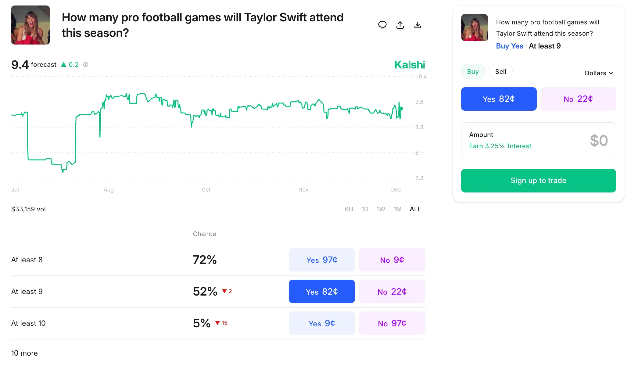 Whether you’re a Swiftie or just a bettor looking for the edge, you can feel that shift. This is proof of how celebrity, sports, and trading have fully collided.