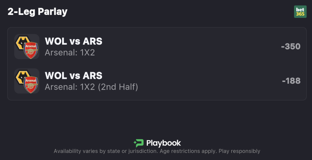 My Arsenal vs. Wolverhampton best bets are for Arsenal to win the match outright and for Arsenal to win the second half.
