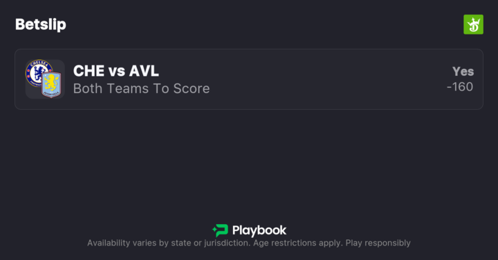 My Aston Villa vs. Chelsea best bet is for both teams to score.