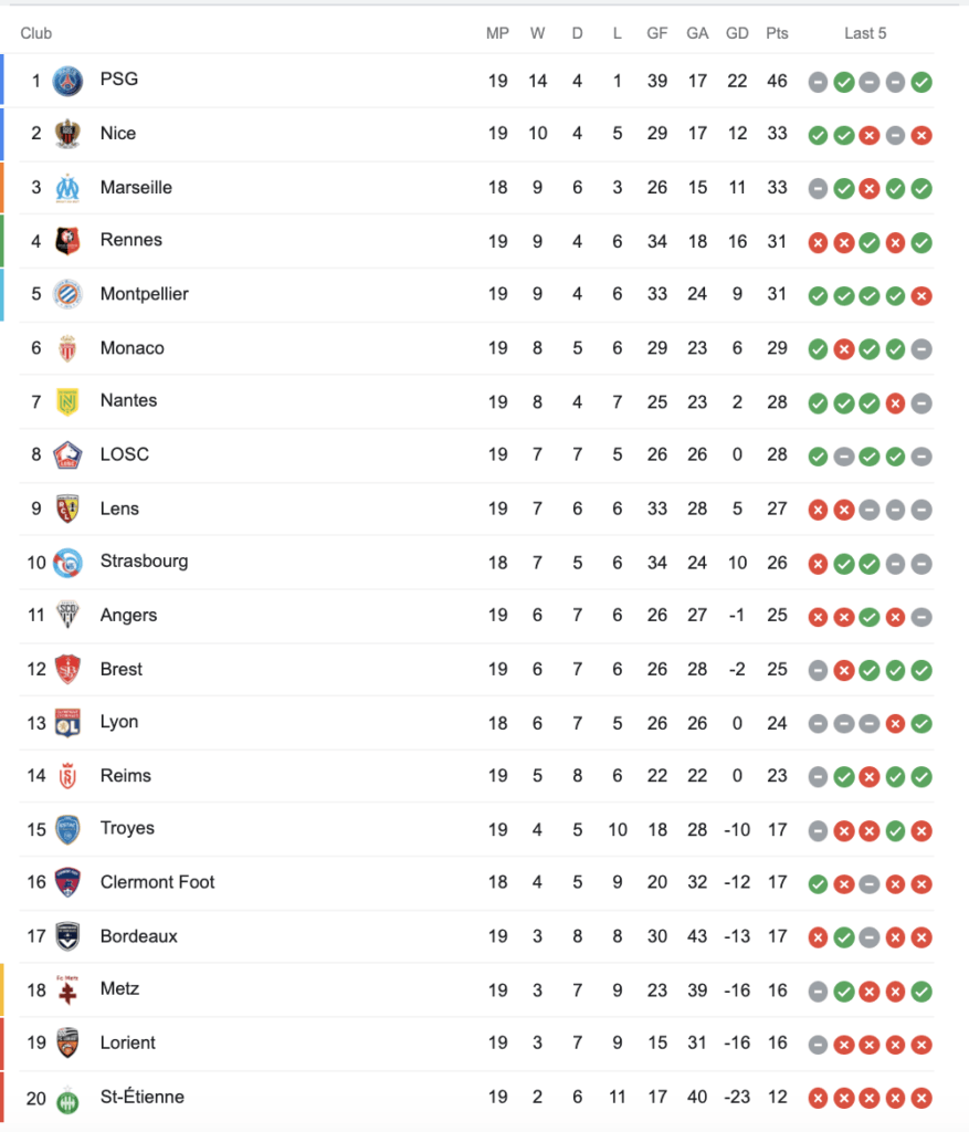 Well, I'm not sure who Metz has left to trot out on the field in this match. At the time of this writing, starters Alexandre Oukidja (goalkeeper), Habib Maïga (center midfielder), Boubakar Kouyaté (center back), Pape Sarr (center midfielder), Dylan Bronn (center back) and Opa Nguette (striker) are sidelined.