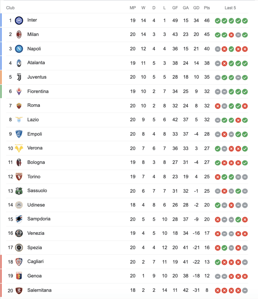 Empoli is a highly overrated team in Serie A right now. They might be sitting in ninth place, but have a -5.3 xG differential on the season, so it's been a bit of smoke and mirrors for them.