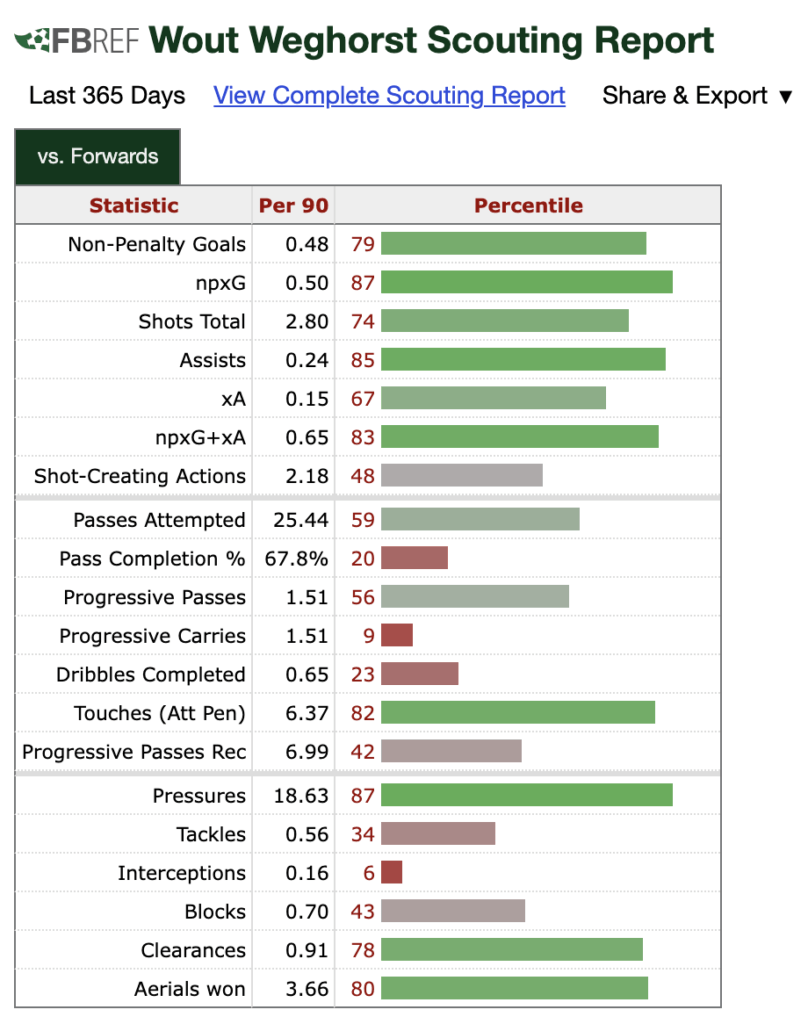 Additionally, star striker Wout Weghorst has returned from injury, which is huge for their offense, considering he has a 0.66 xG per 90-minute scoring rate in eight appearances this season.
