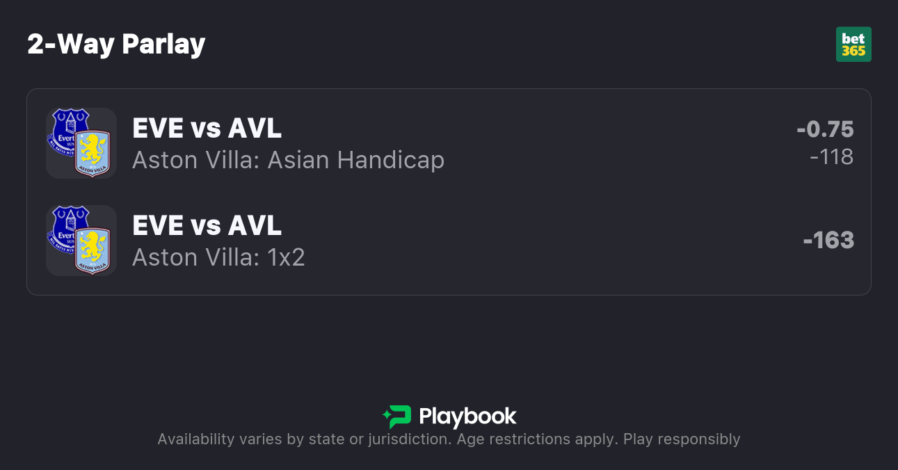 My Everton vs. Aston Villa best bet is on the Villans to win outright with the best odds currently available at bet365.