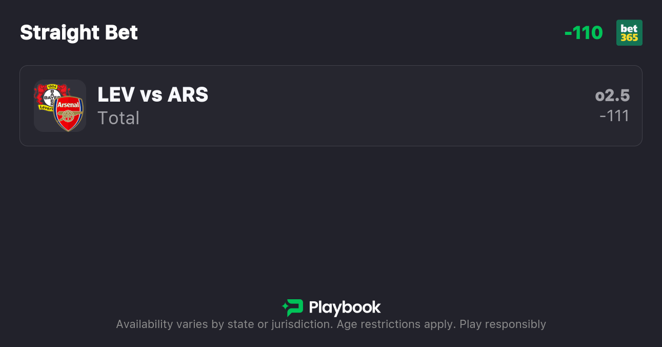 My Arsenal vs. Leverkusen best bet is on the game's total goals.