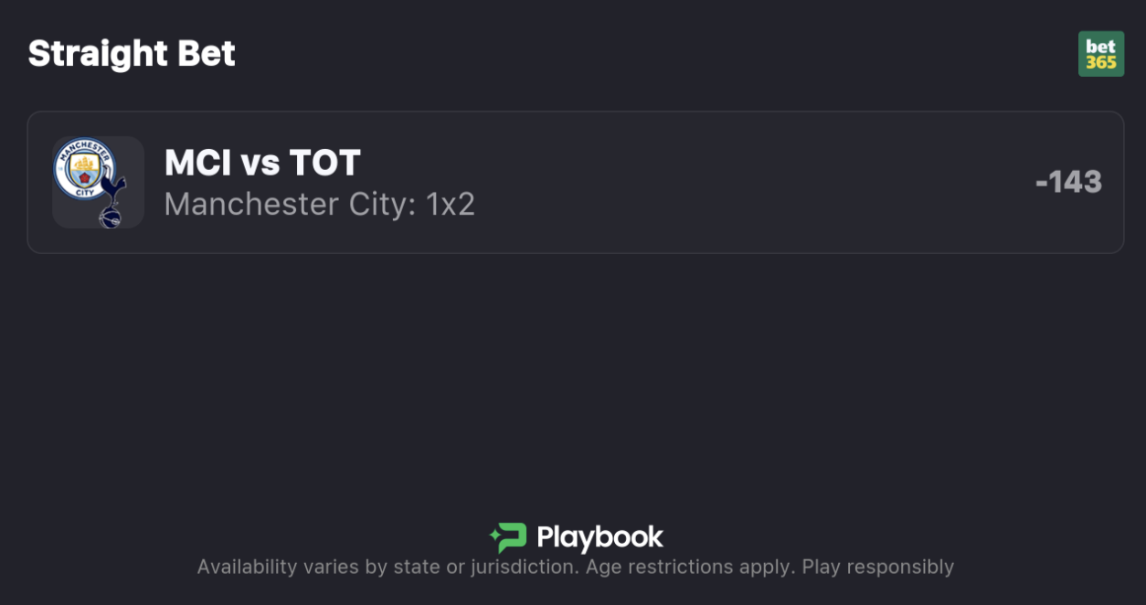 My Man City vs. Tottenham best bet is for Man City to cover the spread.
