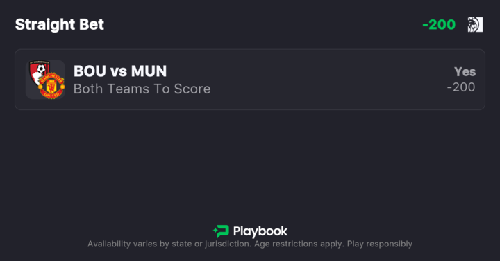 My Man U vs. Bournemouth best bet is for both teams to score, a wager that has hit in four of the past five meetings between these clubs.