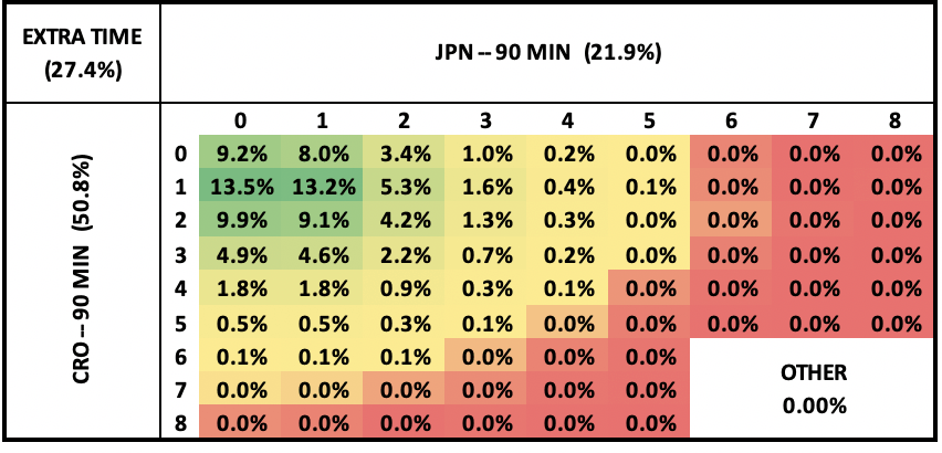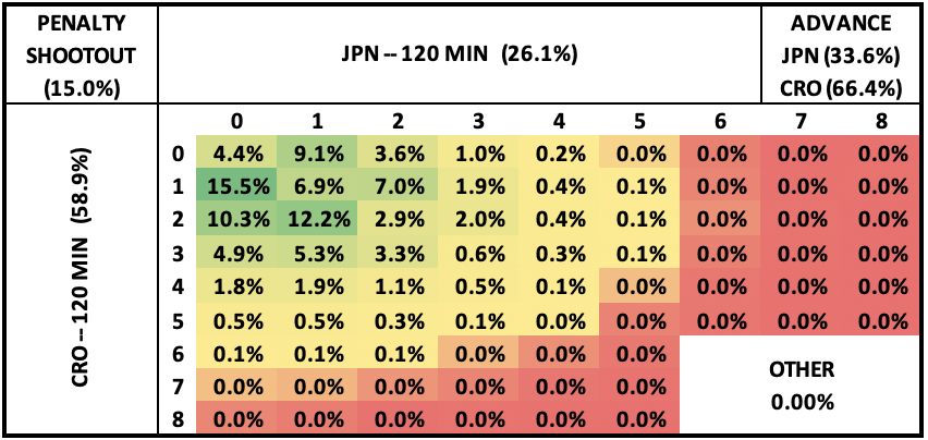 - Croatia are 50.8% favorites to win in regulation and 58.9% to win prior to a possible penalty shootout.