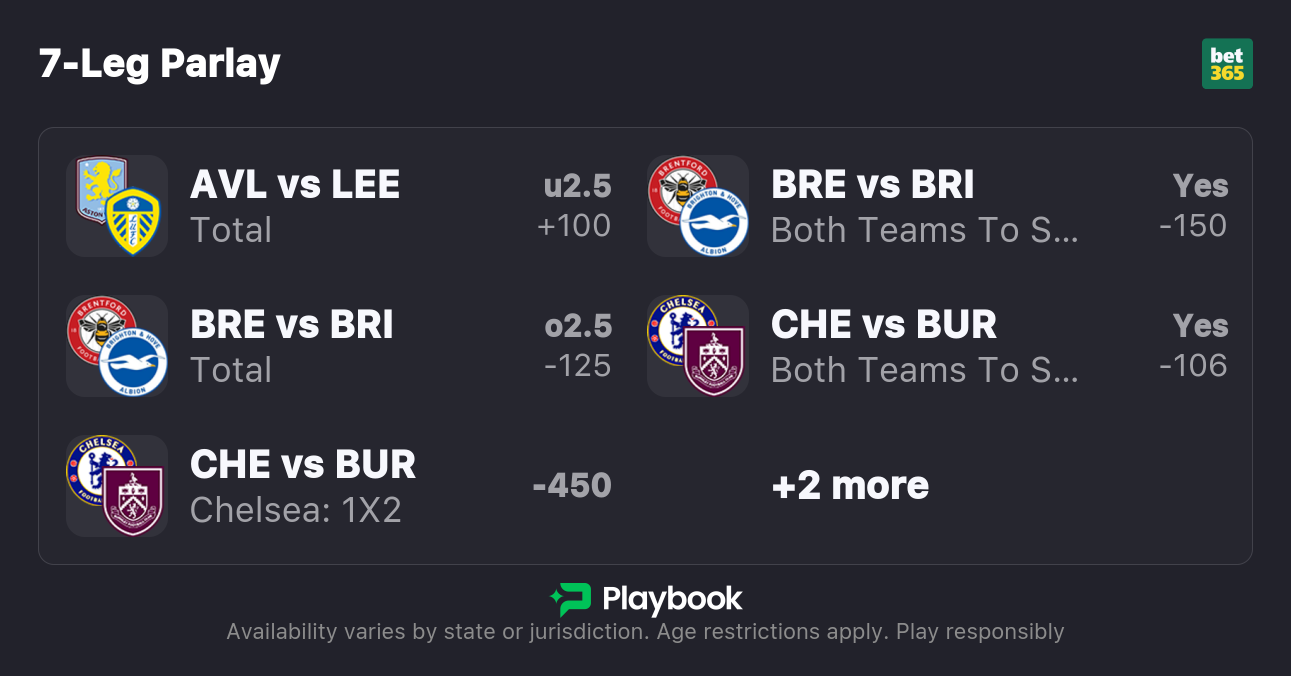 Bournemouth matches have seen the most goals in the Premier League, averaging 3.38 per game. This bet has won in 11 of its last 12 matches across all competitions. The Cherries average a whopping 4.15 away league games. They face a West Ham side whose home matches have seen the joint-most goals, averaging 3.38, so this match looks set to be a goal-fest.