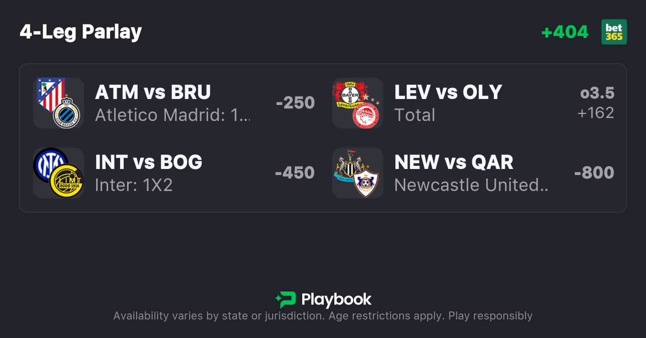 Leverkusen’s Champions League matches have averaged 3.22 goals per game, but that climbs to 4.5 when we include only their four home matches, with this bet winning in two of those games.