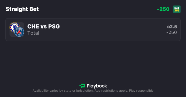 My PSG vs. Chelsea best bet is for the total to go over 2.5. With Chelsea needing to erase a three-goal deficit, they have no choice but to push forward from the opening whistle, which should create an open, high-scoring game.