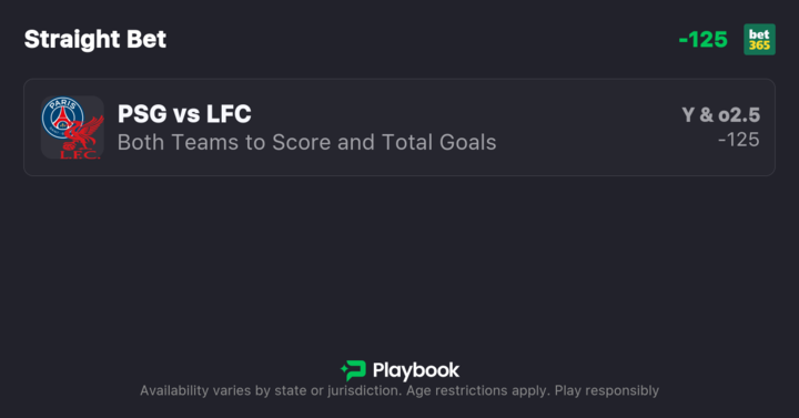 PSG is favored at a -143 price, with the over/under set at 3.5 (+122o / -162u) goals.