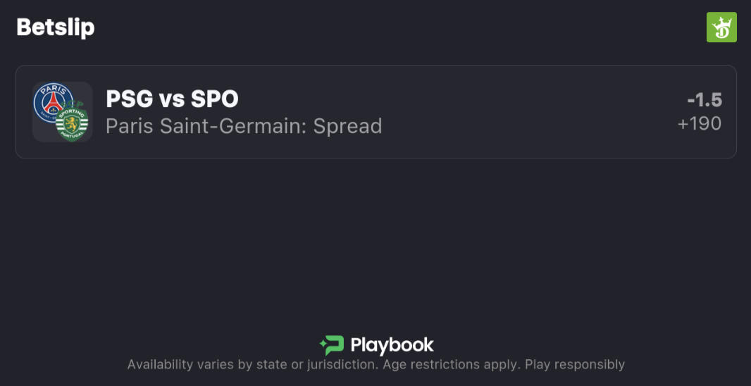 My PSG vs. Sporting best bet is PSG -1.5.