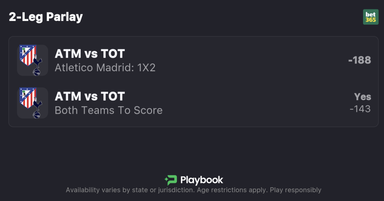 Tottenham vs. Atlético Picks, Parlay