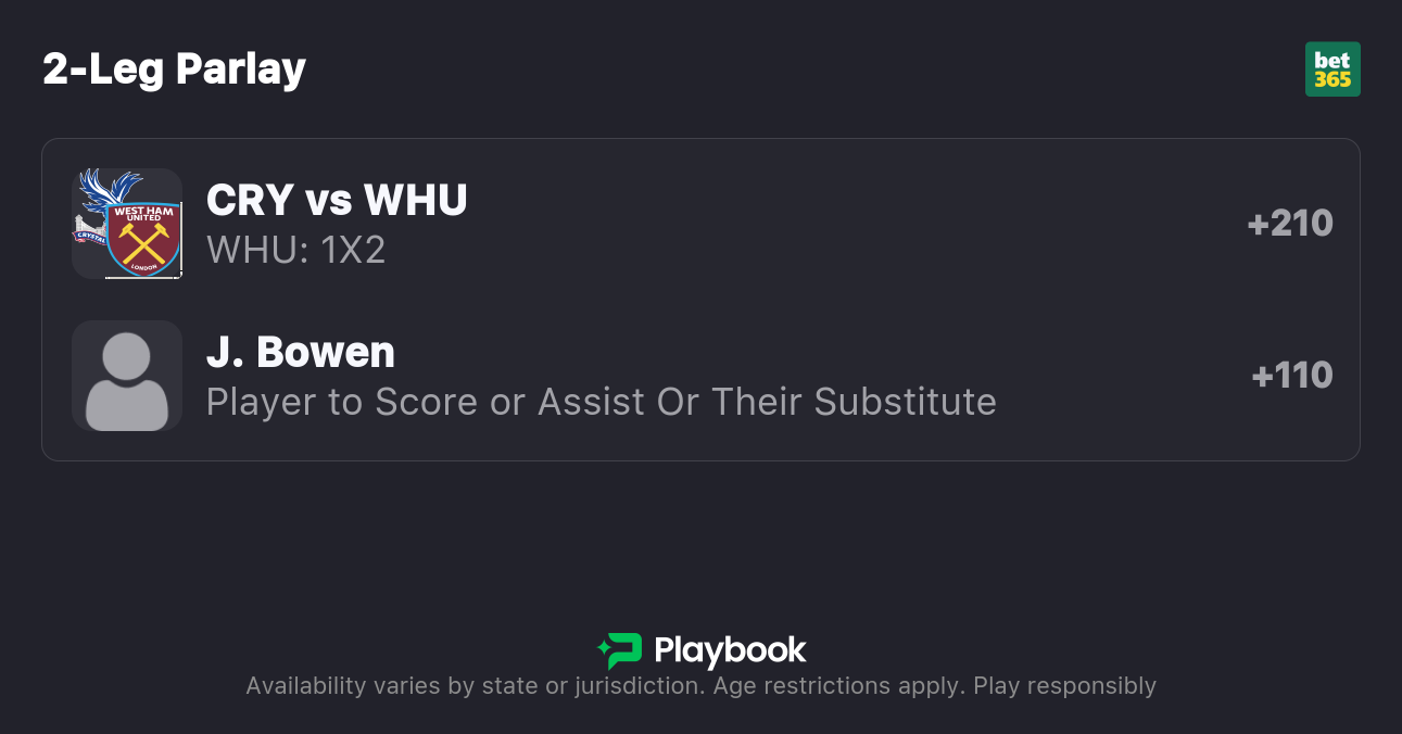 Our West Ham vs. Crystal Palace pick is for West Ham to win and Jarrod Bowen to score or assist.