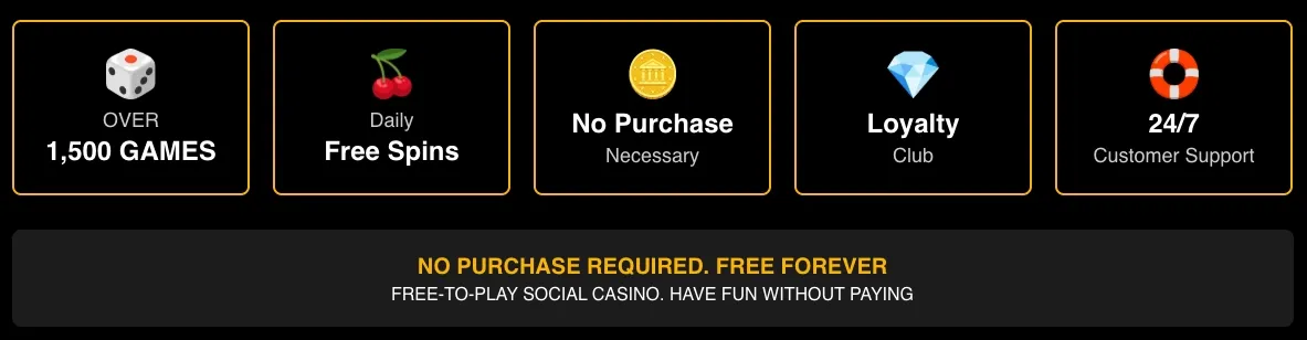- New players can immediately boost their free rewards with a daily login bonus of 1,500 GC + 0.20 SC.