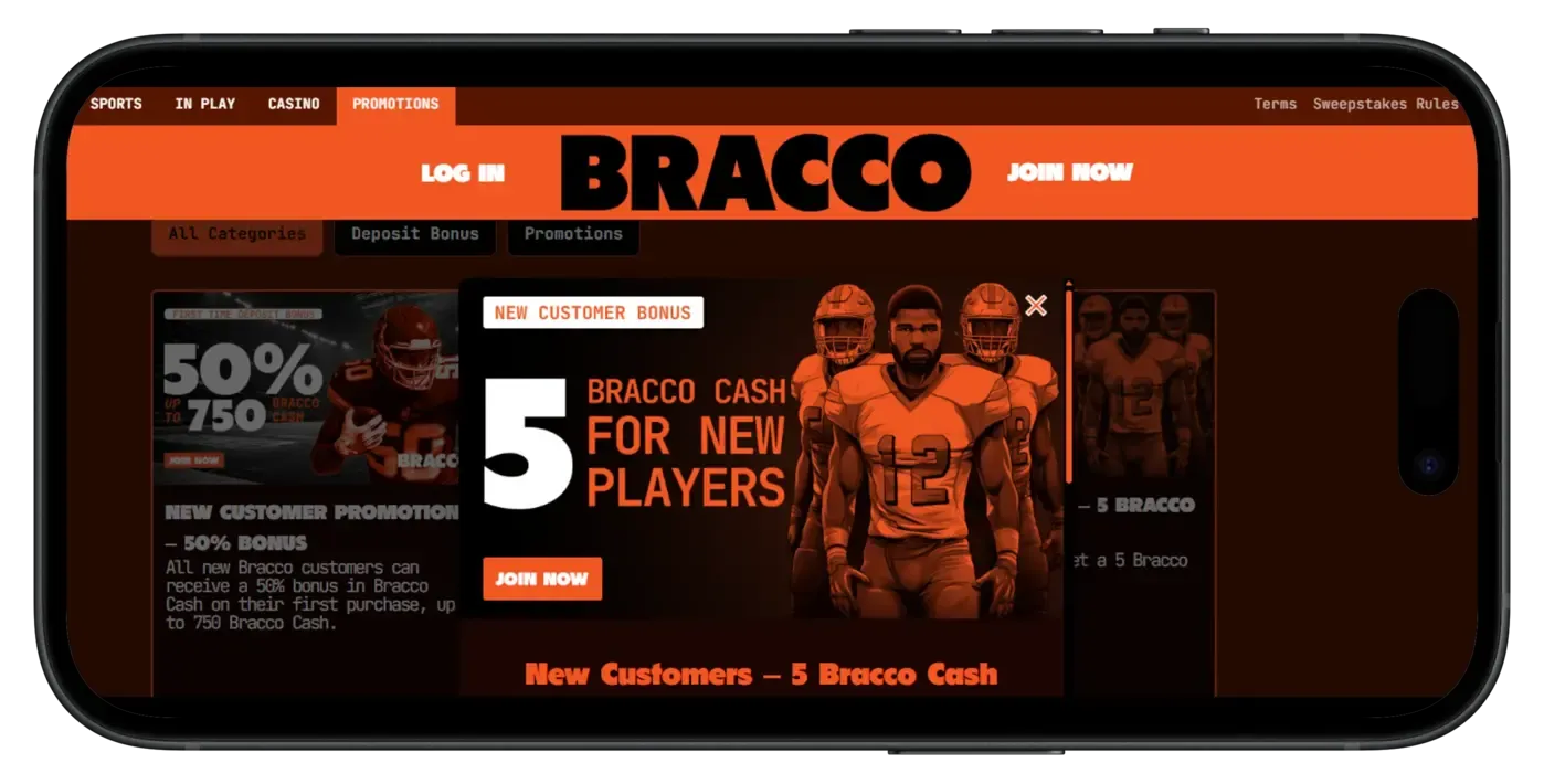 - Only bets in the Bracco Sportsbook contribute to the 50x wagering requirement.