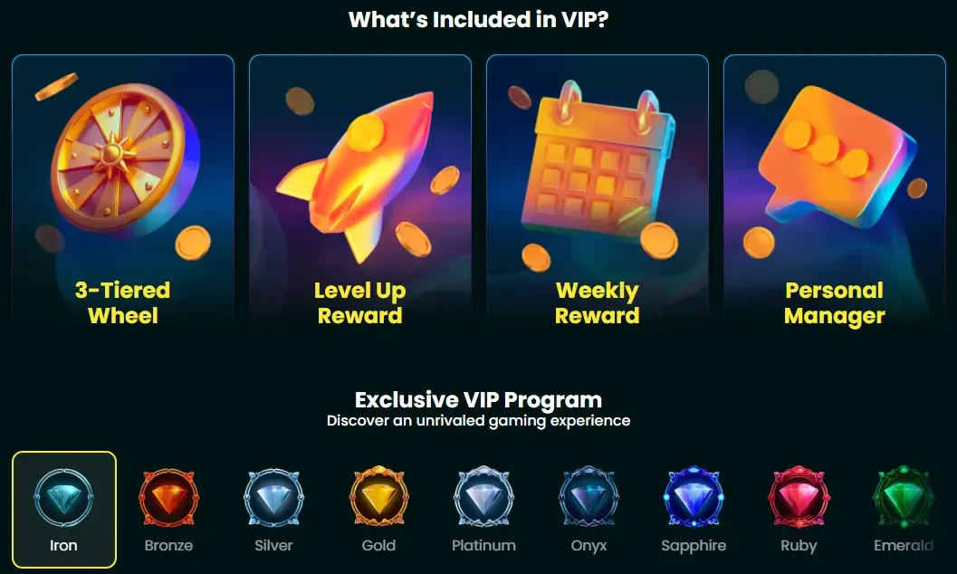The Fortune Wheelz Casino VIP Program operates like many sweeps loyalty schemes. In all, there are 11 tiers, with each level awarding different perks such as weekly rakebacks (returning a certain percentage of wagered coins to a player's bank balance), level up rewards, a special birthday gift, and even a VIP manager. The different tiers are pictured below.