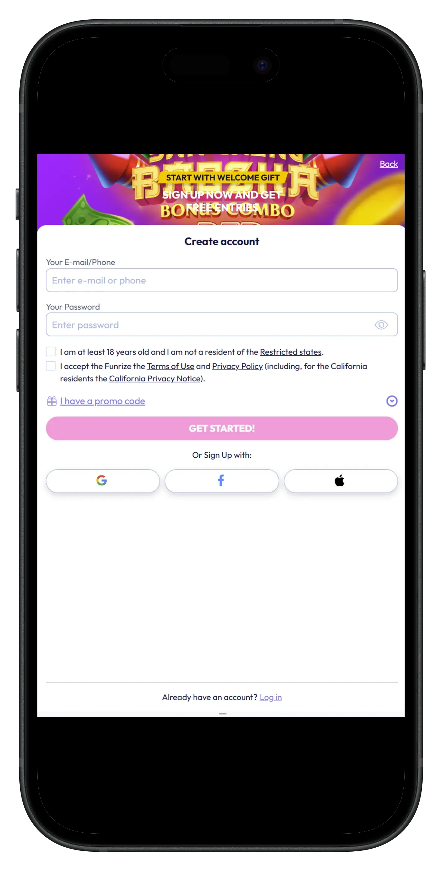 - Verify your email and phone number and create a profile to receive Free Entries.