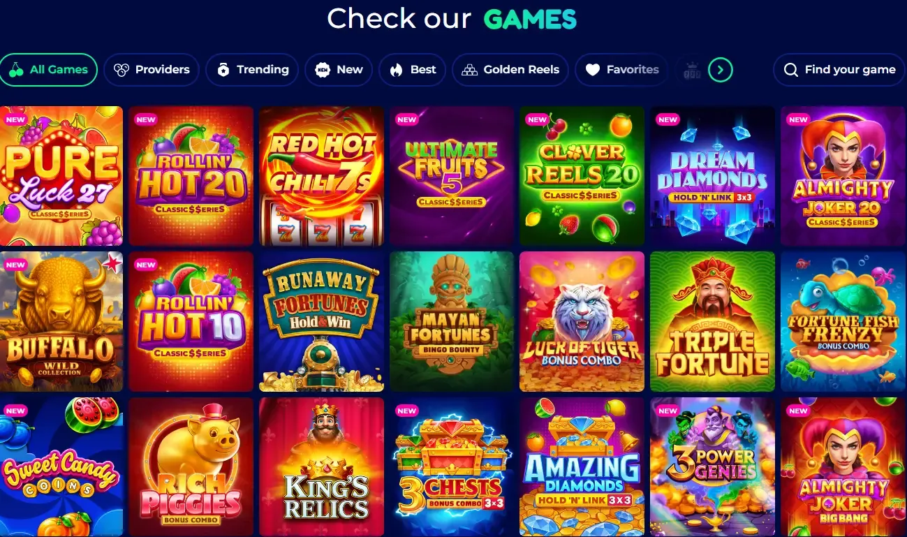Games are neatly organized by category, including a separate section for each software provider. At the moment, there are unfortunately no classic table games or live casino games. That said, new titles are added each week, meaning this is a possibility in the future.