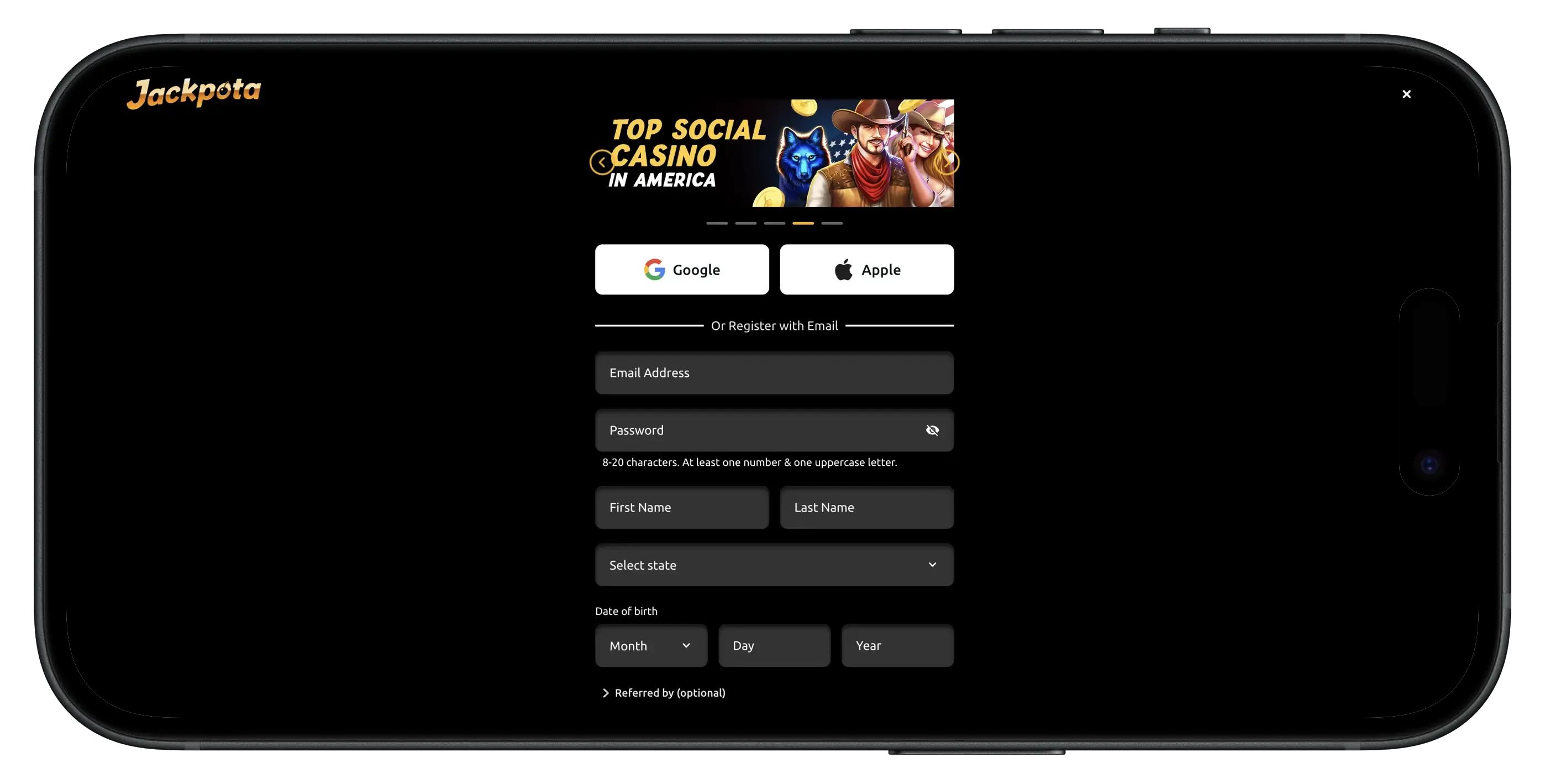Filling out the registration form is easy and straightforward. Creating a Jackpota account is necessary to access bonuses, promotions, and prize redemptions. Jackpota has a strict KYC process in place to verify the age and location of all newcomers, and you will need to provide a government-issued ID, such as a driver's license, with a clear, non-blurry image for verification.