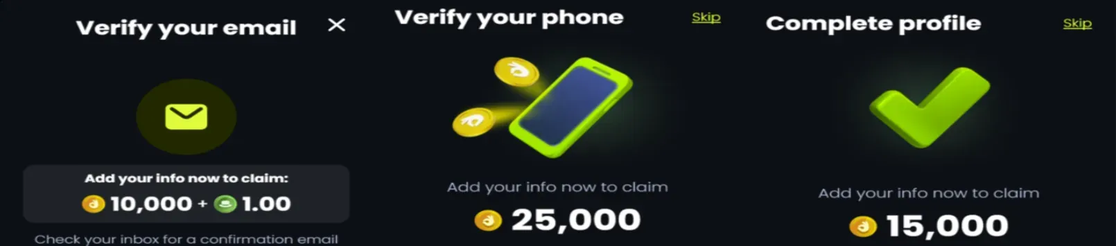- Email Verification: 10,000 GC and 1 SC