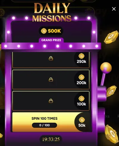 Every day you log in to Roxy Moxy, you will receive a set of daily missions you can try to achieve. There are four of them for you to do consecutively, and each one you get rewarded with the more you complete, the bigger the reward gets. These missions can involve anything from spinning a slot a certain number of times to playing a certain number of sweepstakes coins to purchasing a coin package.