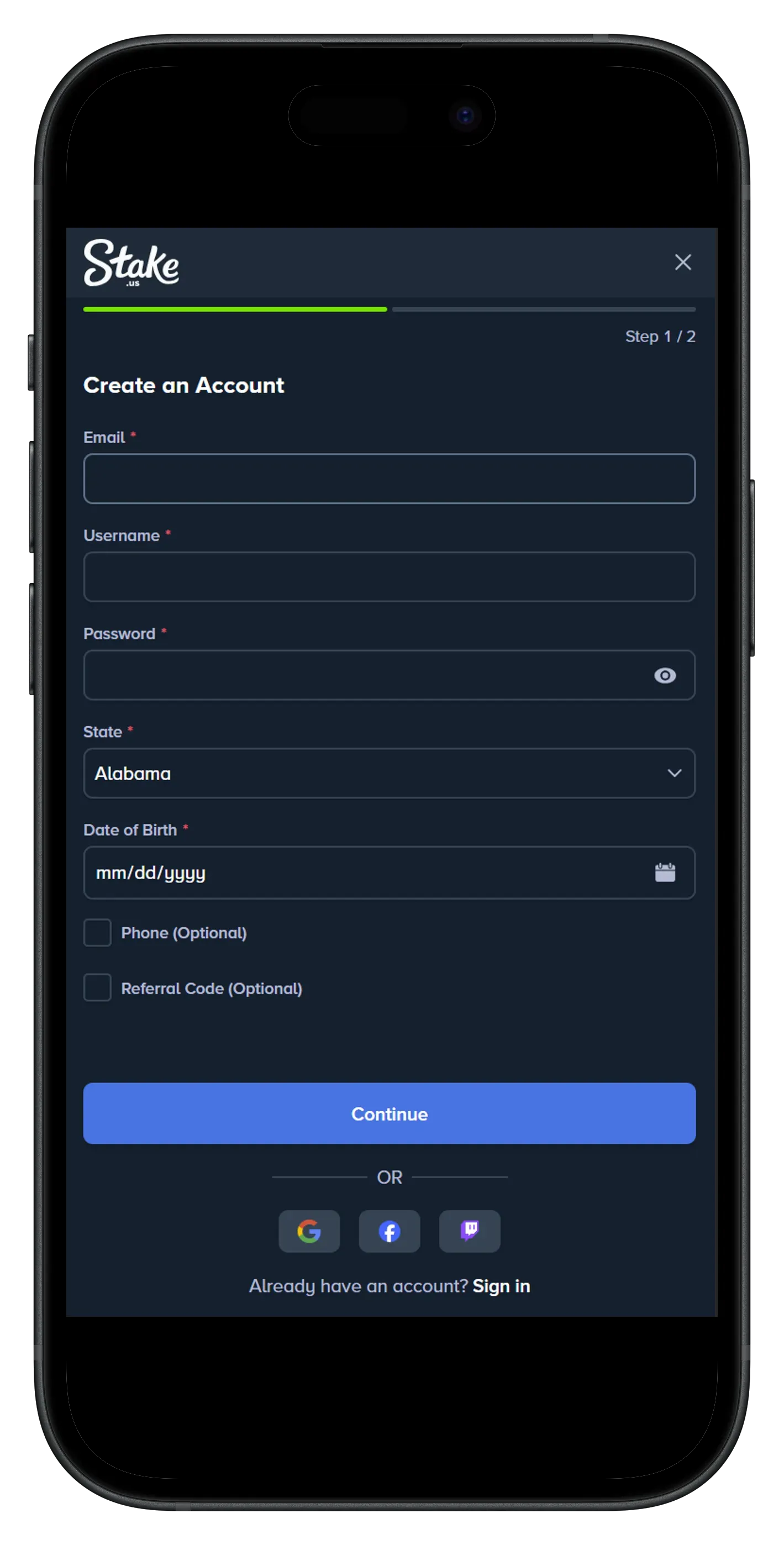 - Create and verify a Stake.us Casino account. If you’re new, sign up using promo code ACTION