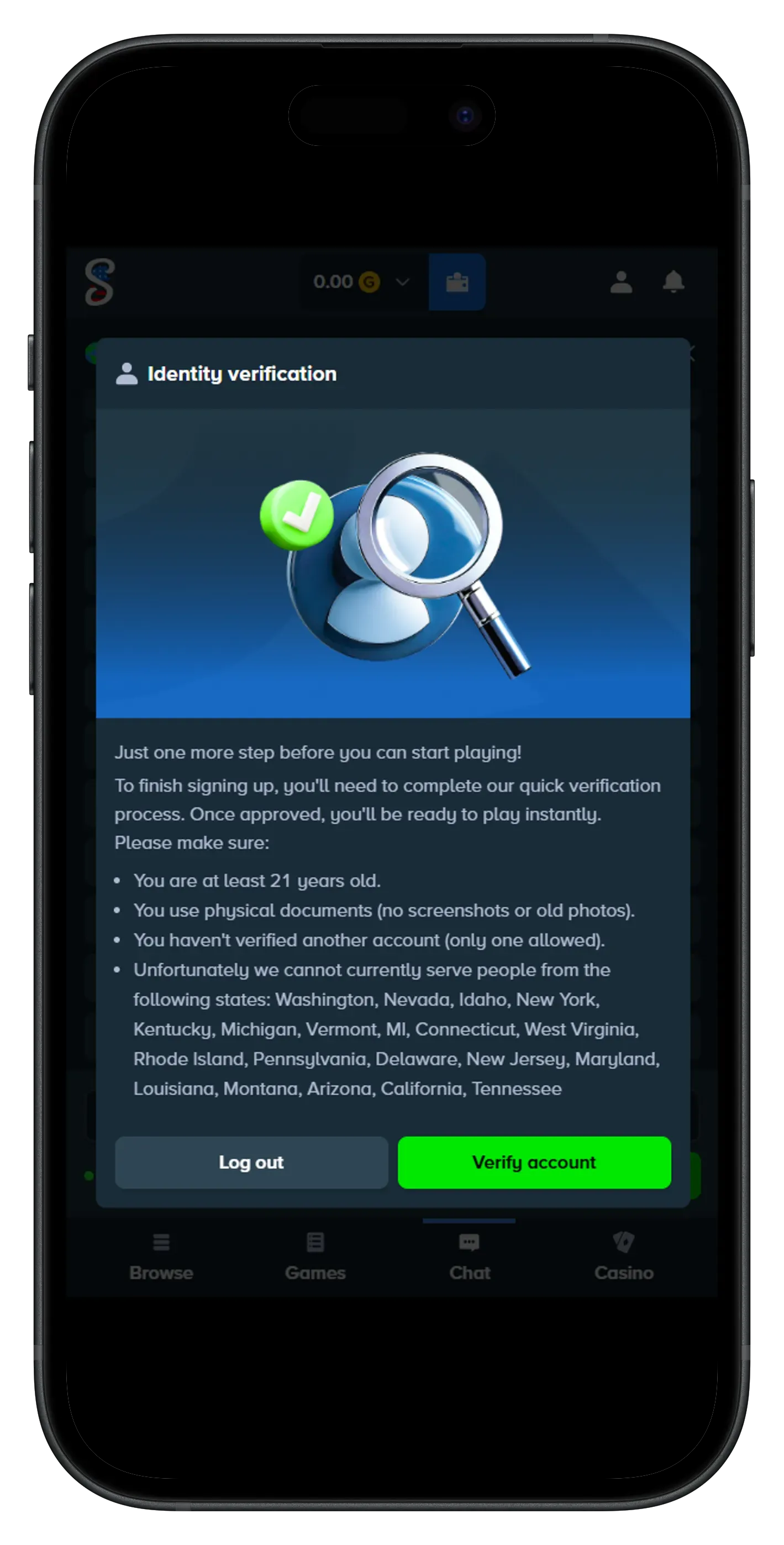 After registering, you’ll need to verify your identity to access referral bonuses and redeem Stake Cash (SC).
