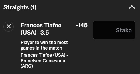 | Spread | Tiafoe -3.5 (-145), Comesana +3.5 (+100) |